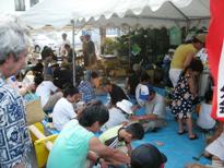 毎年夏休み前に行わる東駒形コミュニティー会館が主体となって行われているイベントです。炎天下にも関わらず、毎年大勢の子どもたちで賑わいます。東京土建墨田支部は、木工教室を担当しています。