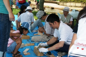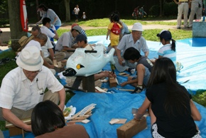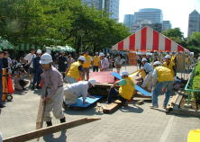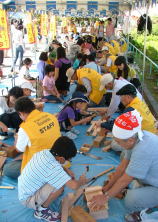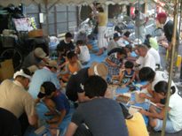 毎年夏休み前に行わる東駒形コミュニティー会館が主体となって行われているイベントです。炎天下にも関わらず、毎年大勢の子どもたちで賑わいます。東京土建墨田支部は、木工教室を担当しています。